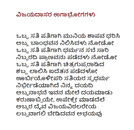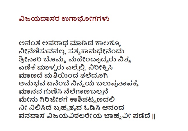 - Ananta Kaalpakke ninna morabiddavage (ಅನಂತ ಕಾಲ್ಪಕ್ಕೆ ನಿನ್ನ ಮೊರೆಬಿದ್ದವಗೆ) (Lyrics)