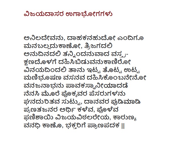 - Hariye jagake kartha hariye jagake bhartha (ಹರಿಯೆ ಜಗಕೆ ಕರ್ತ ಹರಿಯೆ ಜಗಕೆ ಭರ್ತ) (Lyrics)