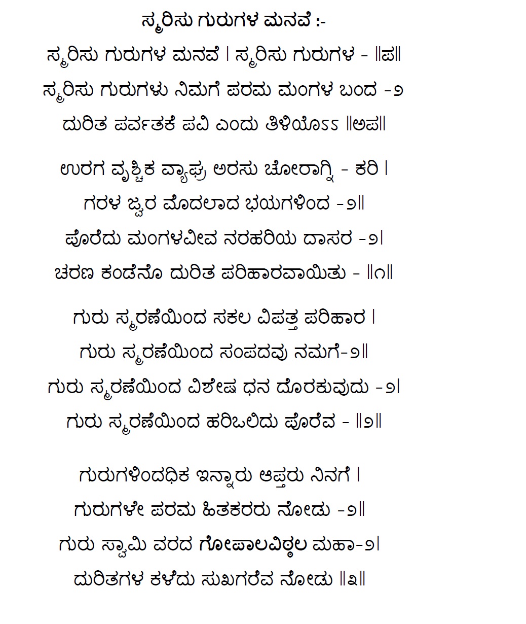 3. Smarisu gurugala manave (ಸ್ಮರಿಸು ಗುರುಗಳ ಮನವೇ) (Lyrics) (Video)