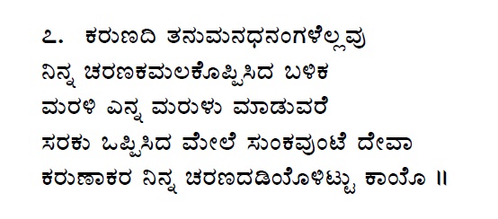 - Karunadi tanu mana dhanagalellavu (ಕರುಣದಿ ತನು ಮನ ಧನಗಳೆಲ್ಲವೂ) (Lyrics)