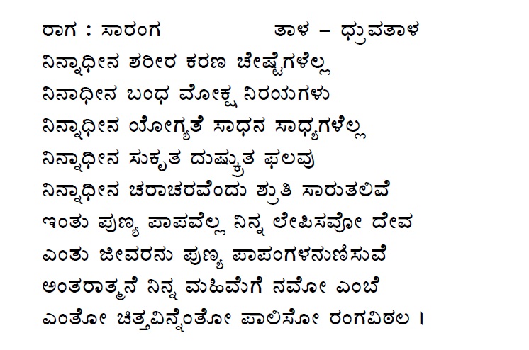 - Ninnaadheena shareera karana (ನಿನ್ನಾಧೀನ ಶರೀರ ಕರಣ) (Lyrics)