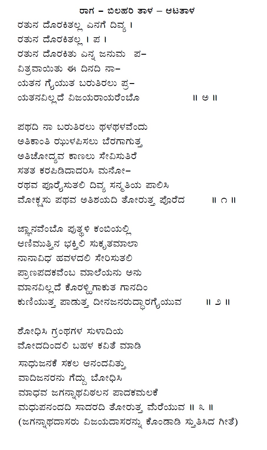 2. Ratuna dorakitella enage (ರತುನ ದೊರಕಿತೆಲ್ಲ ಎನಗೆ) (Lyrics)