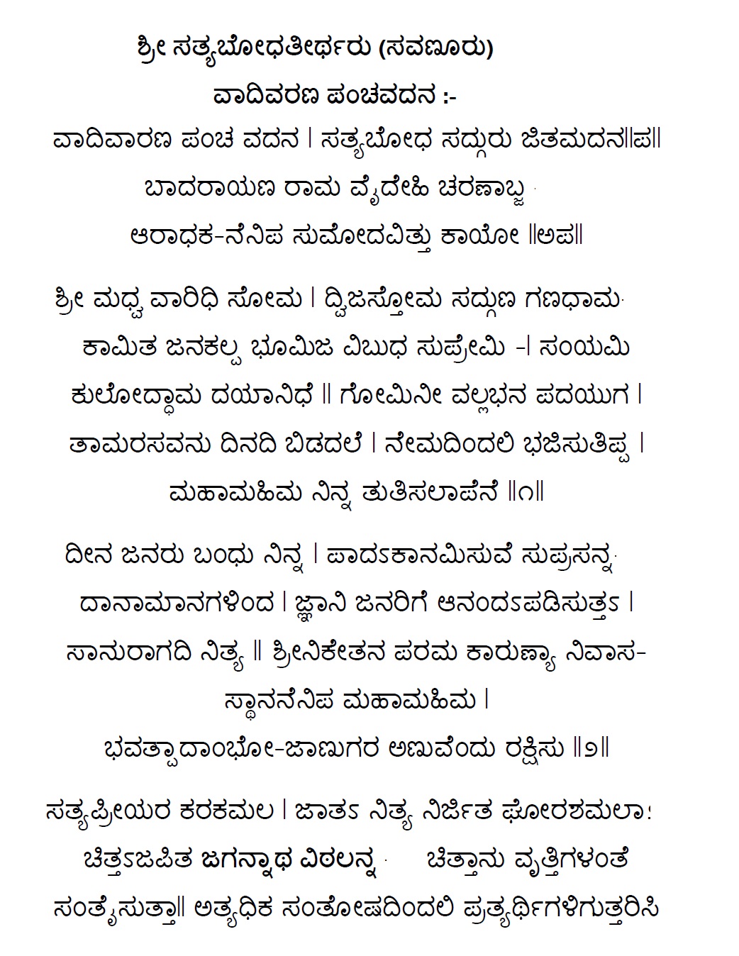 21. Vaadivaarana pancha vadana – Sri Satyabodha Tirtha stotra (ವಾದಿವಾರಾಣ ಪಂಚ ವದನ) (ಶ್ರೀ ಸತ್ಯಬೋಧ ತೀರ್ಥ ಸ್ತೋತ್ರ) (Lyrics)