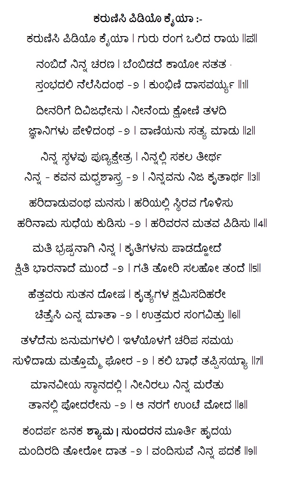 1. Karunisi pidiyo kaiya (ಕರುಣಿಸಿ ಪಿಡಿಯೂ ಕೈಯ) (Lyrics)