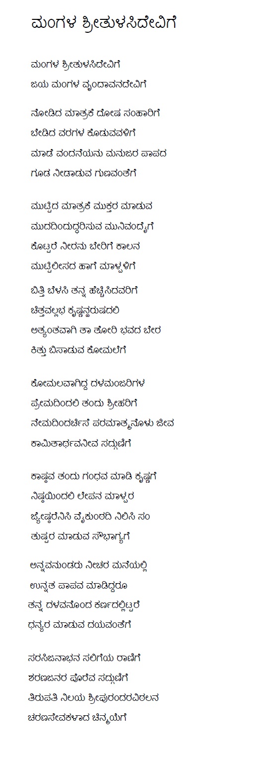 - Tulasi devi padake (ತುಳಸಿ ದೇವಿ ಪದಕೆ) (Lyrics)