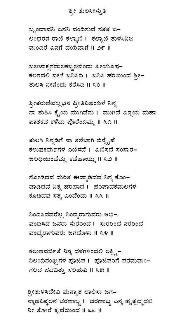 - Tulasi stuthi (ತುಳಸಿ ಸ್ತುತಿ) (Lyrics)