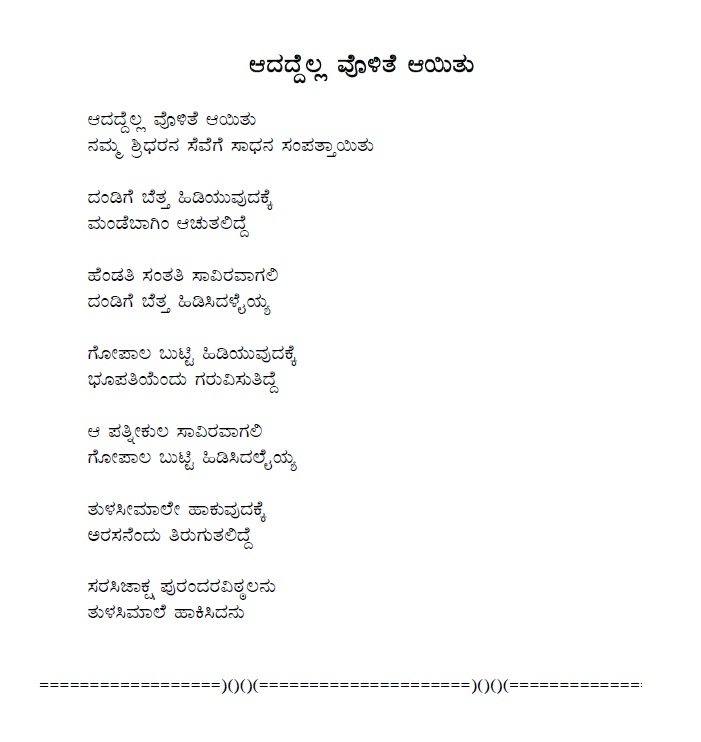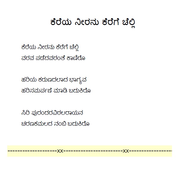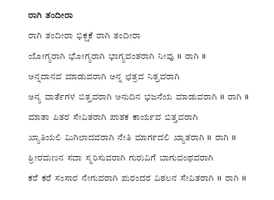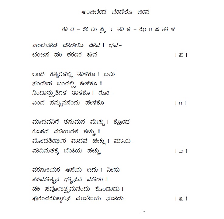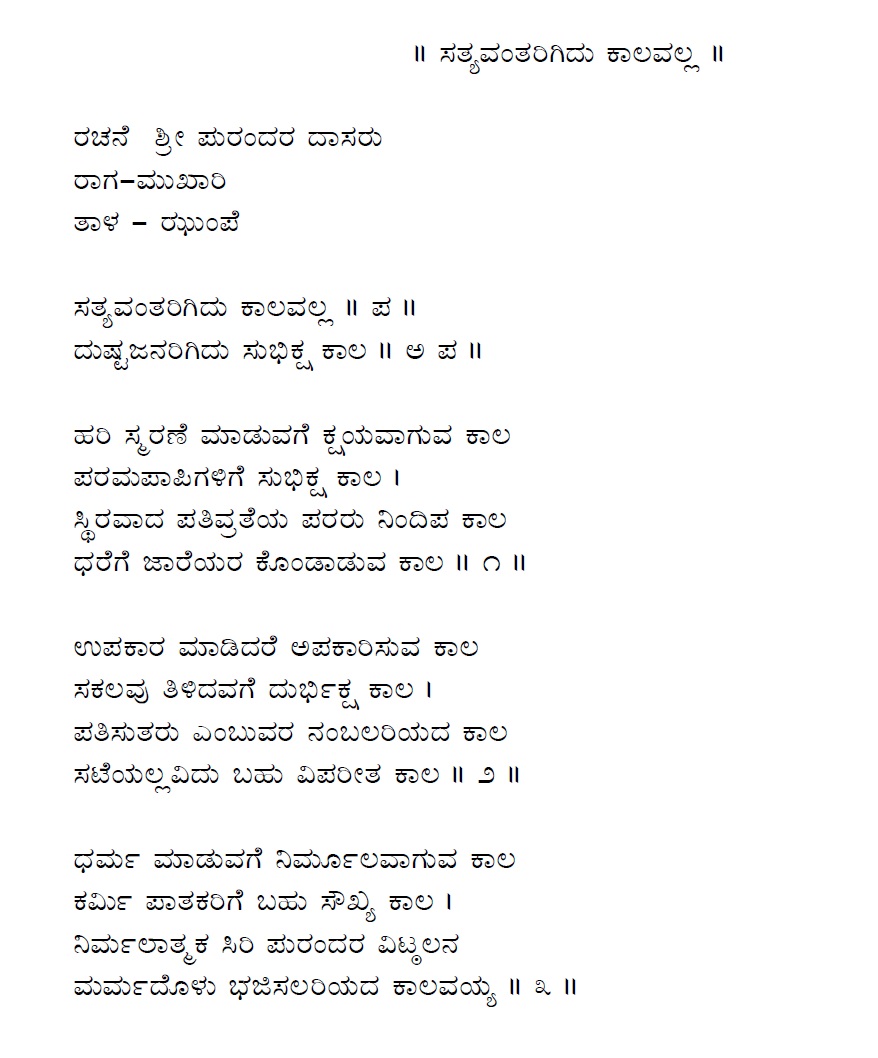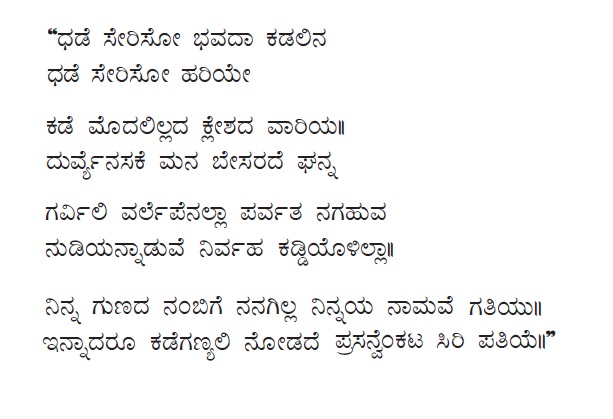 3. Baruvudella barali siri hariya karunavirali (ಬರುವುದೆಲ್ಲ ಬರಲಿ ಸಿರಿ ಹರಿಯ ಕರುಣವಿರಲಿ) (Lyrics)