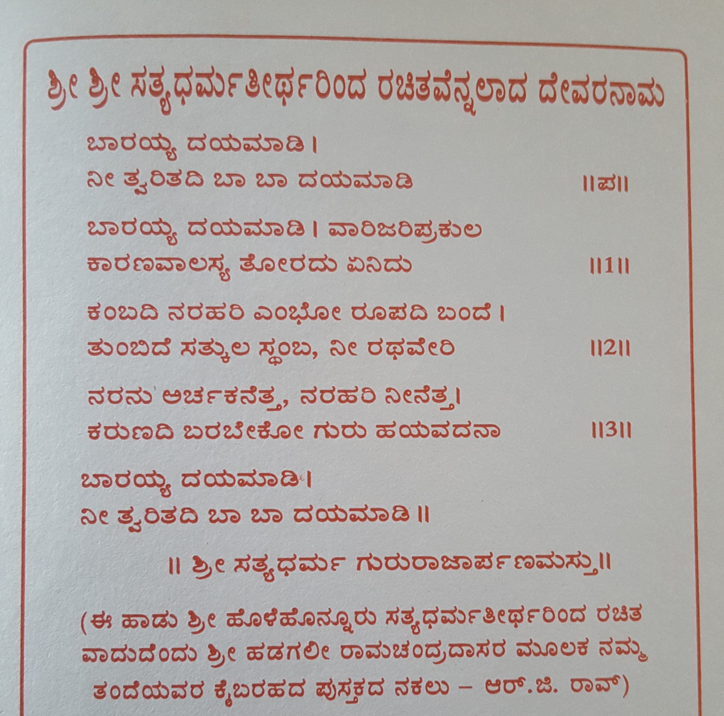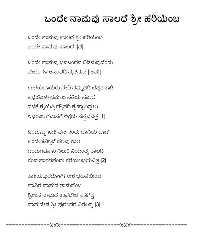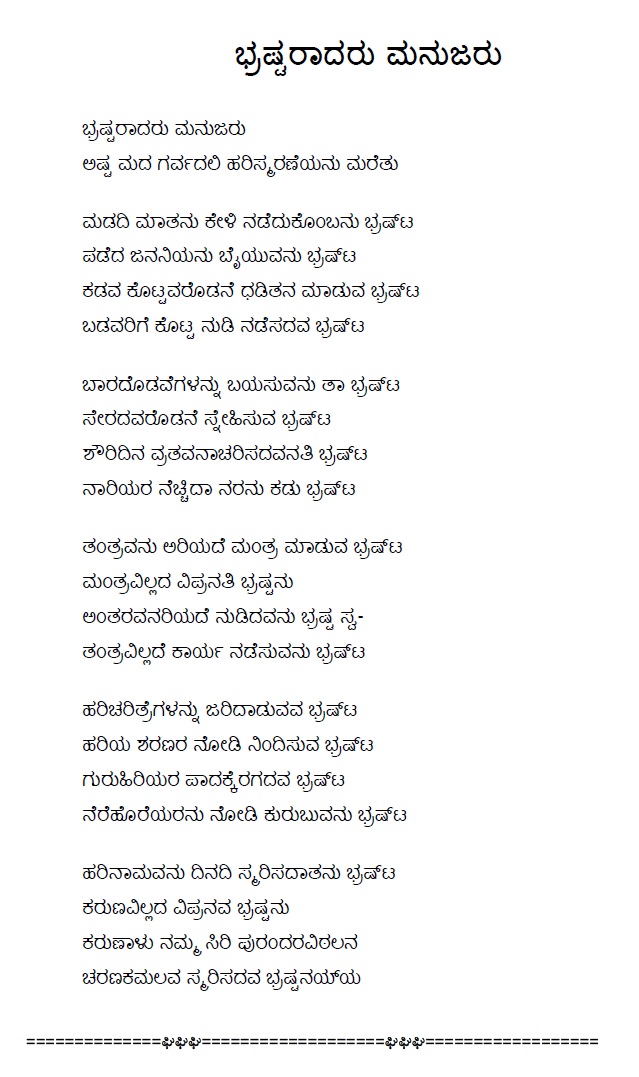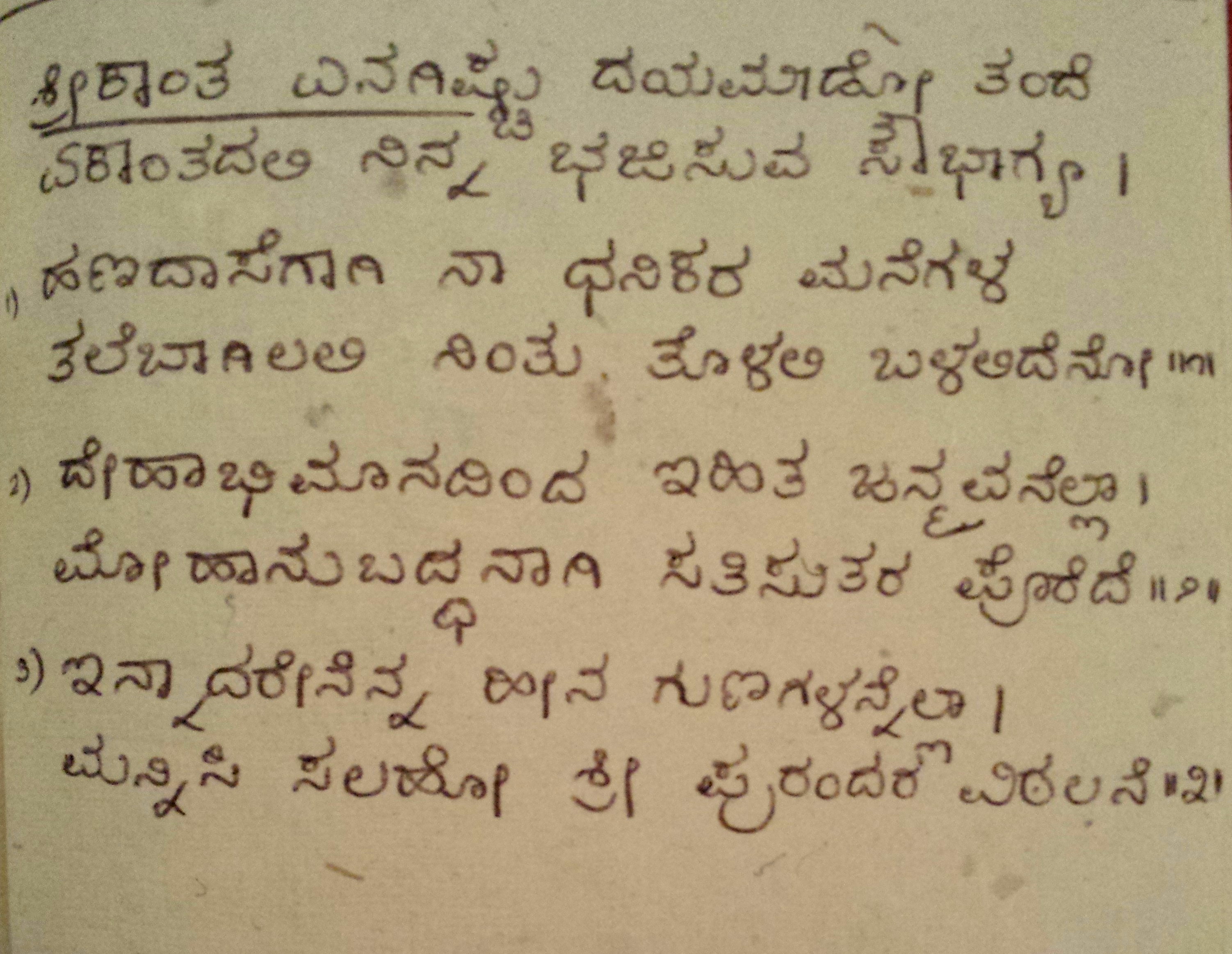 3. Baruvudella barali siri hariya karunavirali (ಬರುವುದೆಲ್ಲ ಬರಲಿ ಸಿರಿ ಹರಿಯ ಕರುಣವಿರಲಿ) (Lyrics)