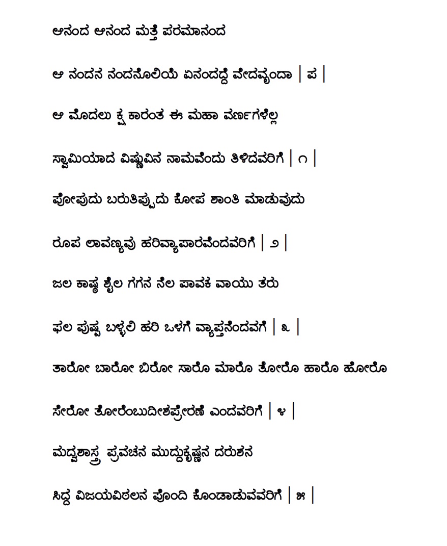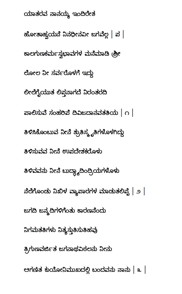 1. Madhuha ninagarpitavo sarva karma (ಮಧುಹಾ ನಿನಗರ್ಪಿತವೋ ಸರ್ವ ಕರ್ಮಾ) (Lyrics)