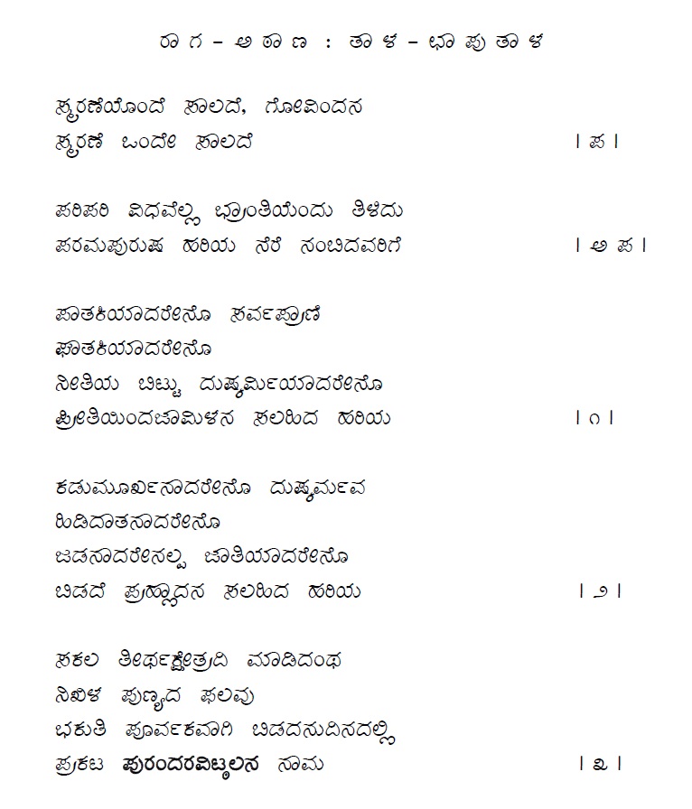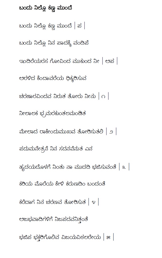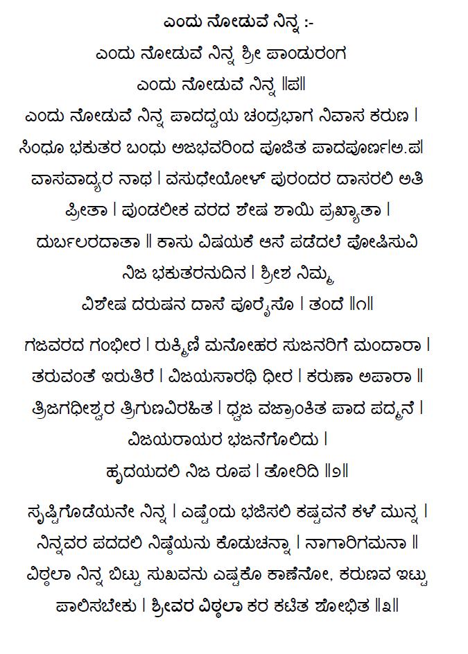7. Endu kambeno panduranga muruthiya (ಎಂದು ಕಾಂಬೆನೊ ಪಾಂಡುರಂಗ ಮೂರುತಿಯ) (Lyrics)