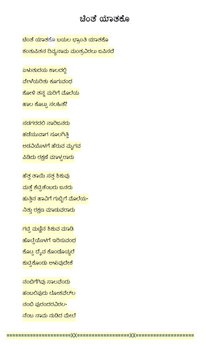 20. Yaatara bhaya srinathana parama (ಯಾತರ ಭಯ ಶ್ರೀನಾಥನ ಪರಮ) (Lyrics)