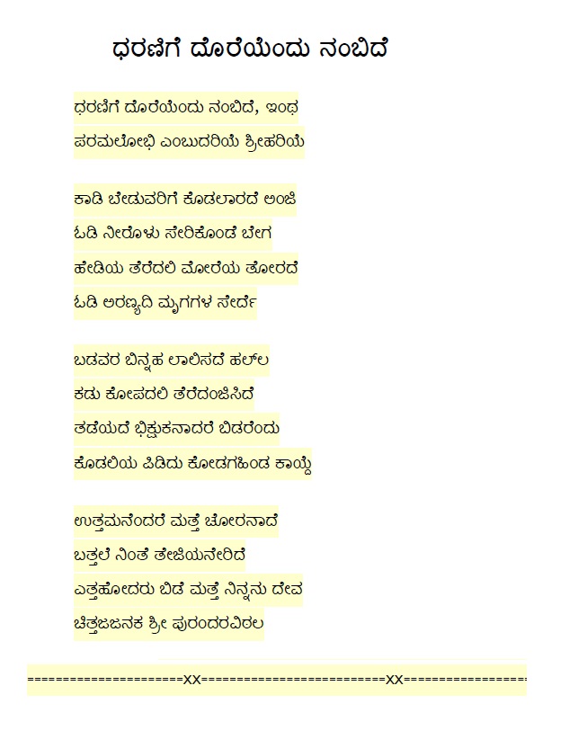 1. Dayamaado hariye dayamaado (ದಯಮಾಡೋ ಹರಿಯೇ ದಯಮಾಡೋ) (Lyrics)