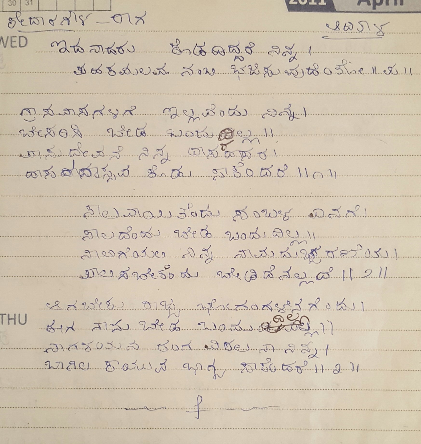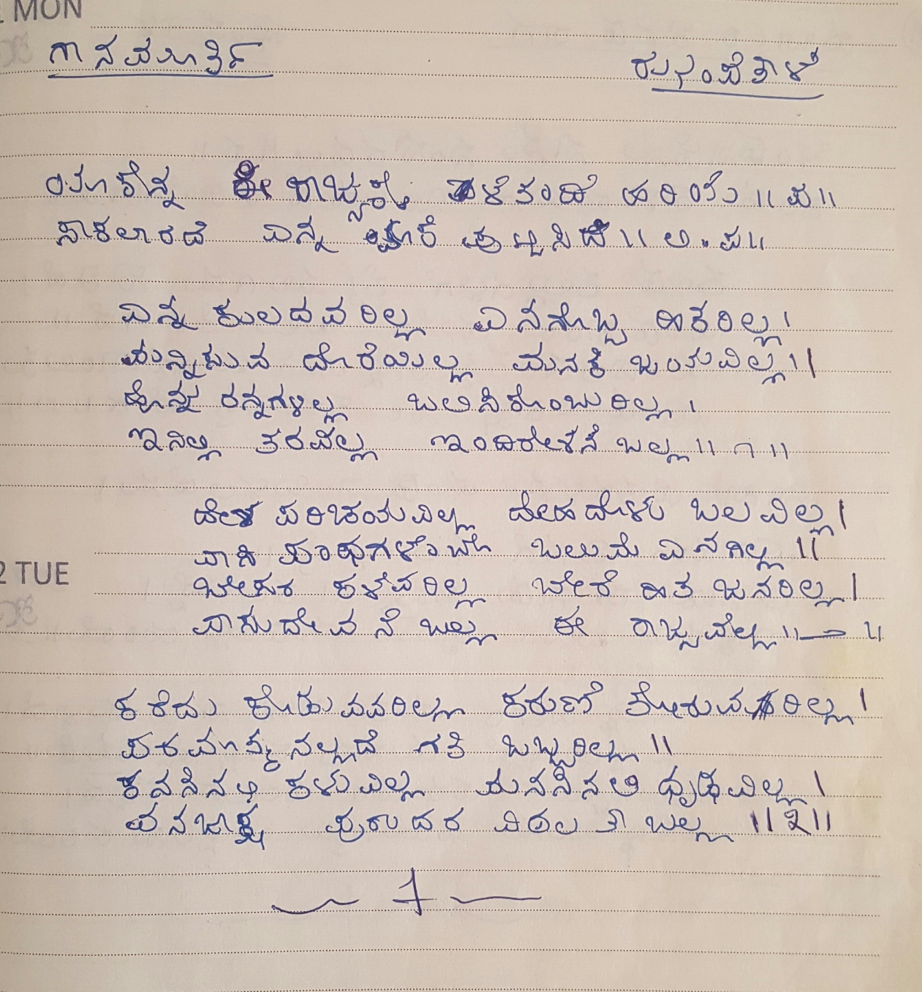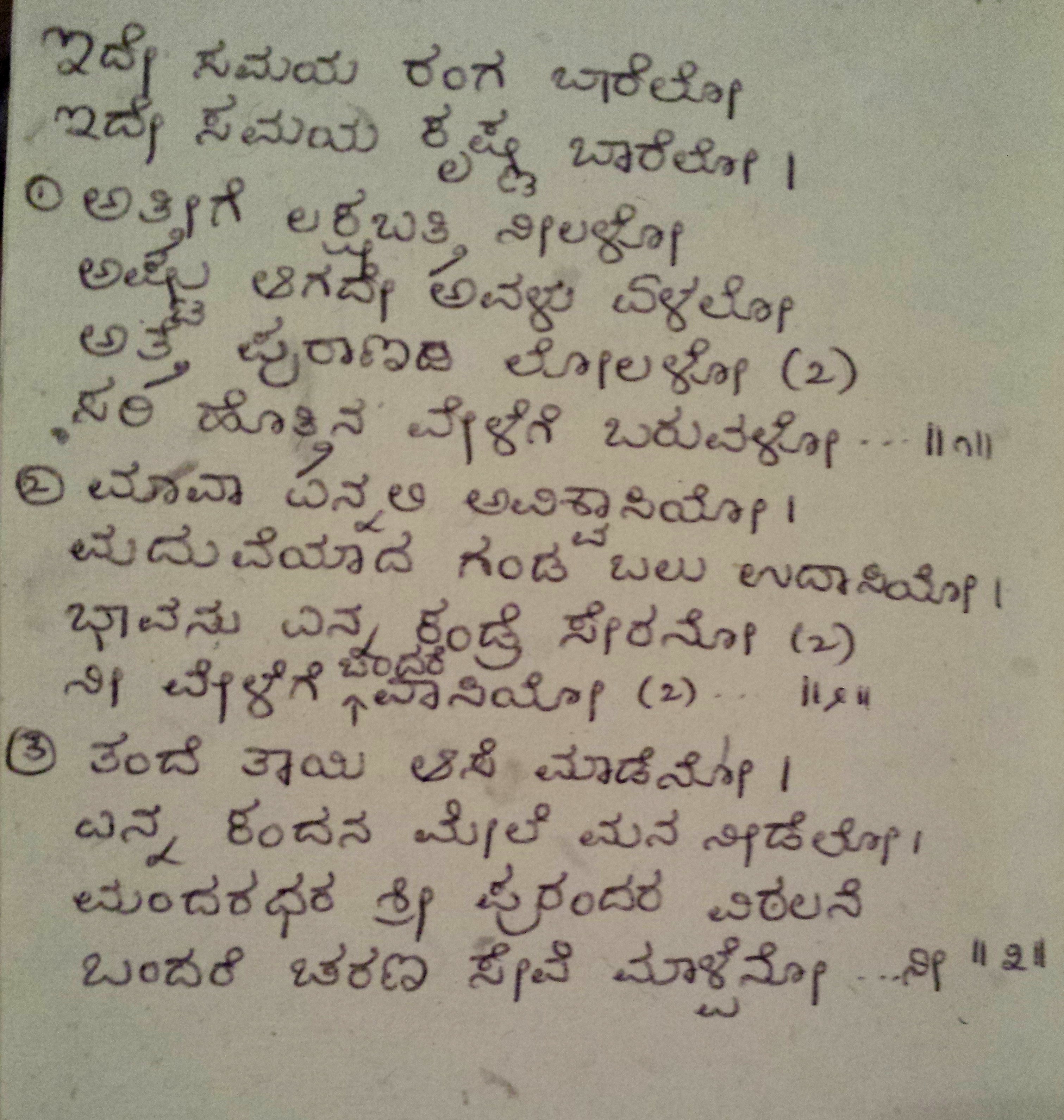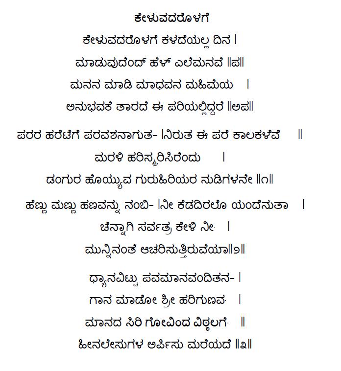 2. Keluvadarolage kaladeyalla dina (ಕೇಳುವದರೊಳಗೆ ಕಳದೆಯಲ್ಲ ದಿನ) (Lyrics)