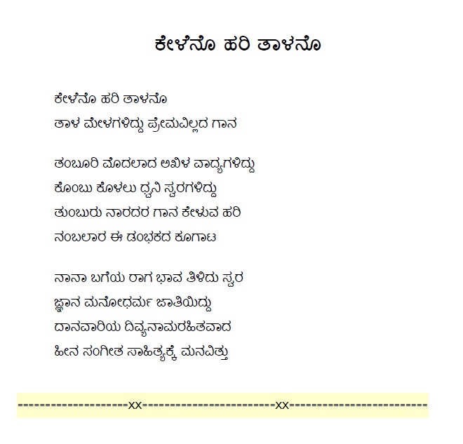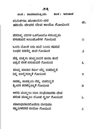 18. Kaadanaa vatsava hari (ಕಾದನಾ ವತ್ಸವ ಹರಿ) (Lyrics)