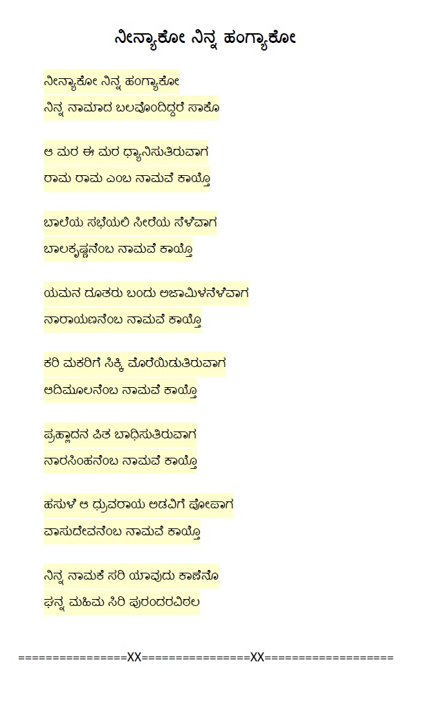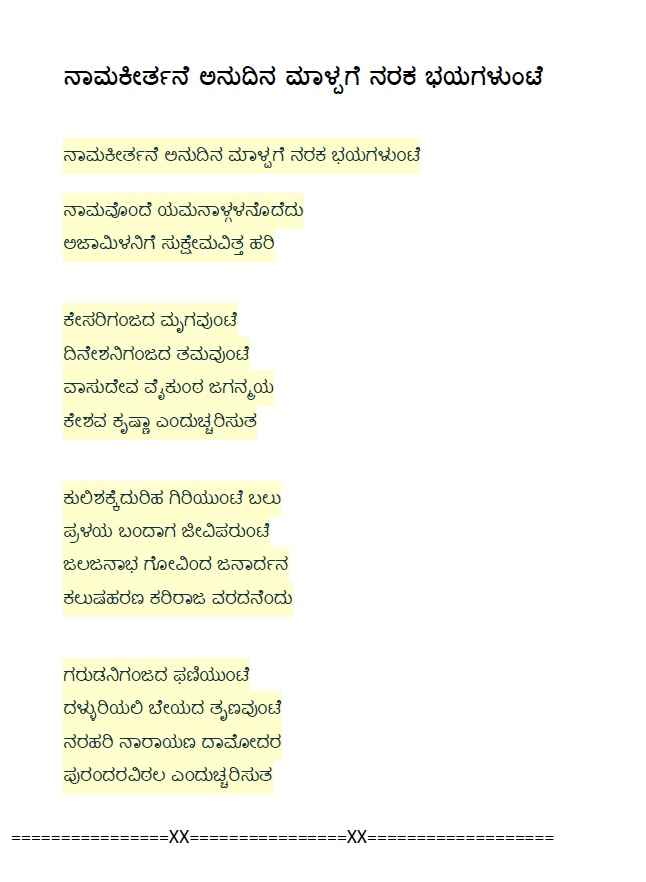 19. Kaala kaalakke ninna namada (ಕಾಲ ಕಾಲಕ್ಕೆ ನಿನ್ನ ನಾಮದ) (Lyrics)