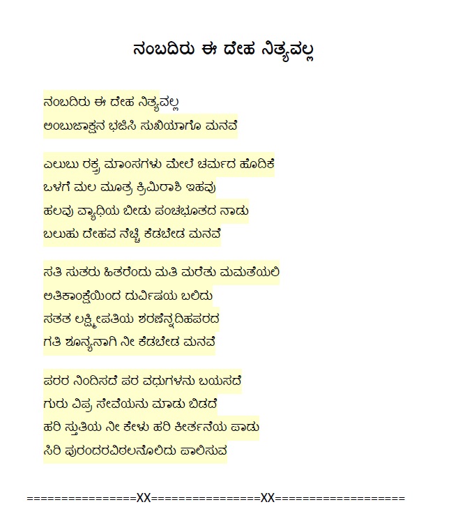 17. Haribhakthi illadavanobba kona (ಹರಿಭಕ್ತಿ ಇಲ್ಲದವನೊಬ್ಬ ಕೋಣ) (Lyrics)