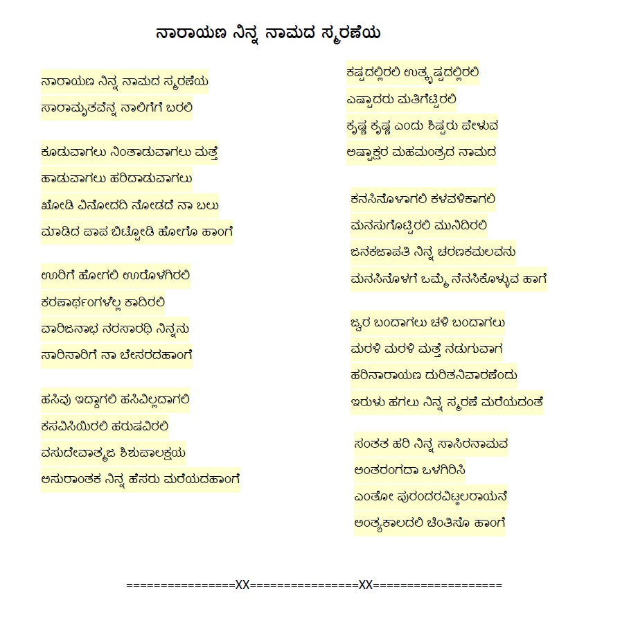 21. Narayanana naamake etara (ನಾರಾಯಣನ ನಾಮಕೆ ಇತರ) (Lyrics)