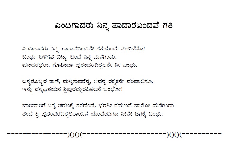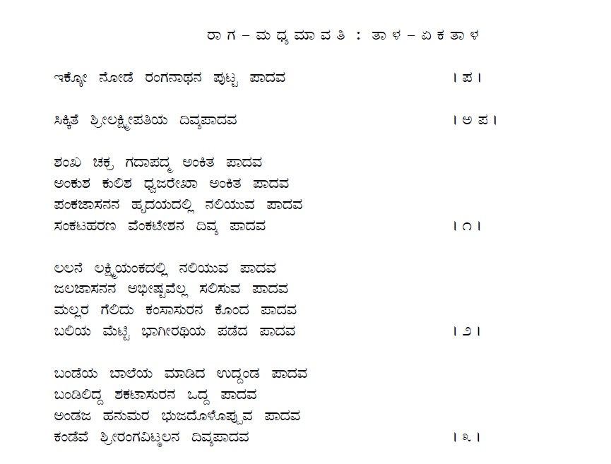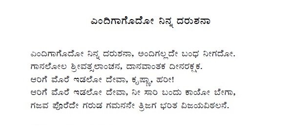 1. Endige ninna paada kambe (ಎಂದಿಗೆ ನಿನ್ನ ಪಾದ ಕಾಂಬೆ) (Lyrics)