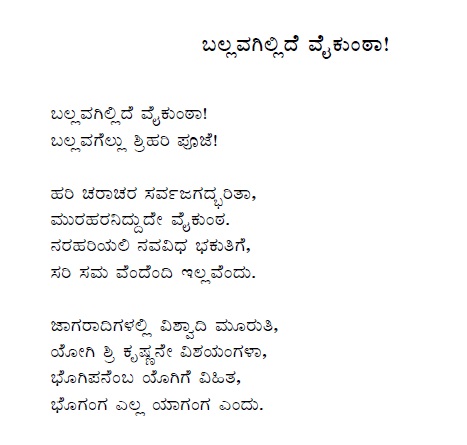 3. Ballavagillide vaikunta (ಬಲ್ಲವಗಿಲ್ಲಿದೆ ವೈಕುಂಟ) (Lyrics)