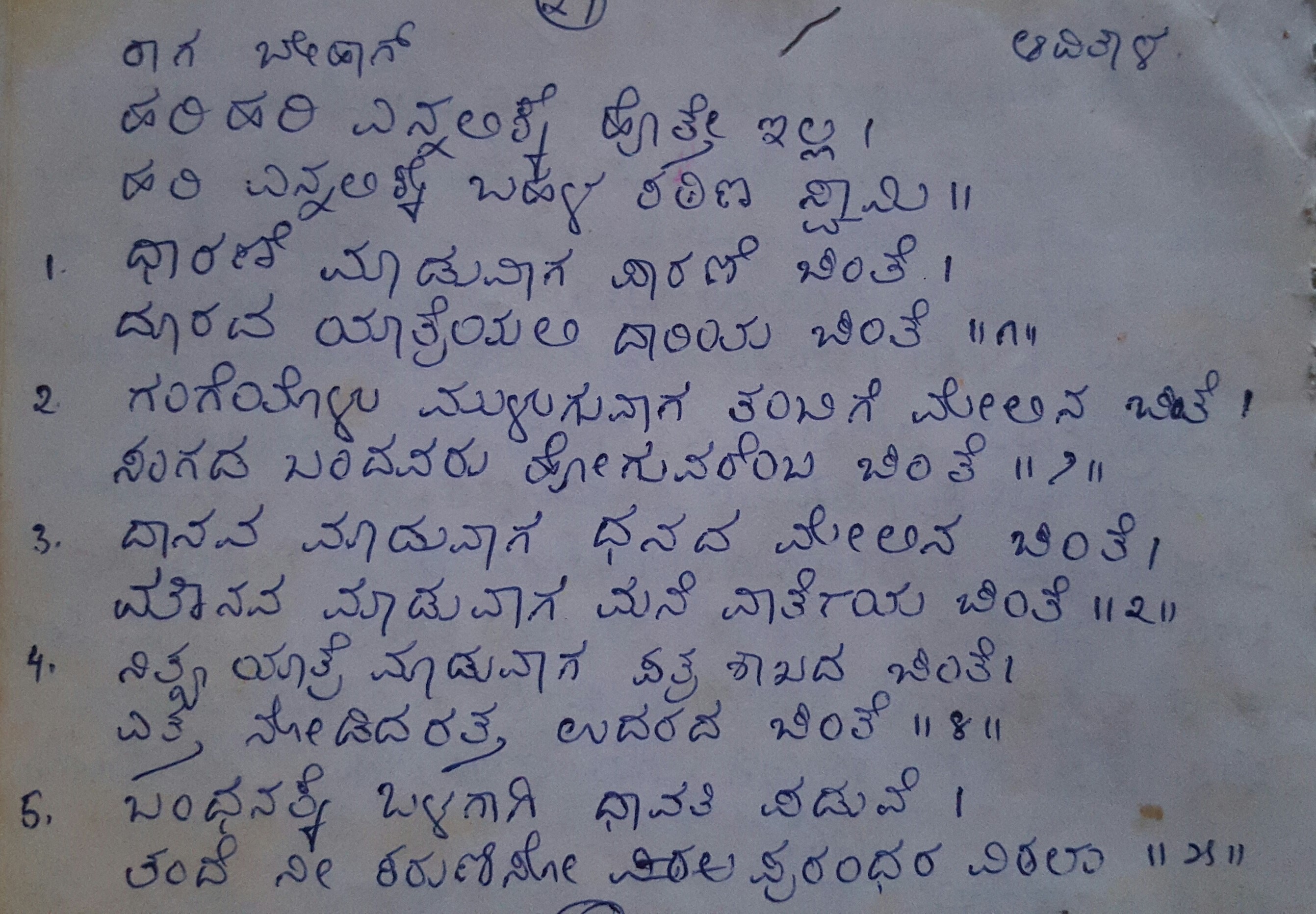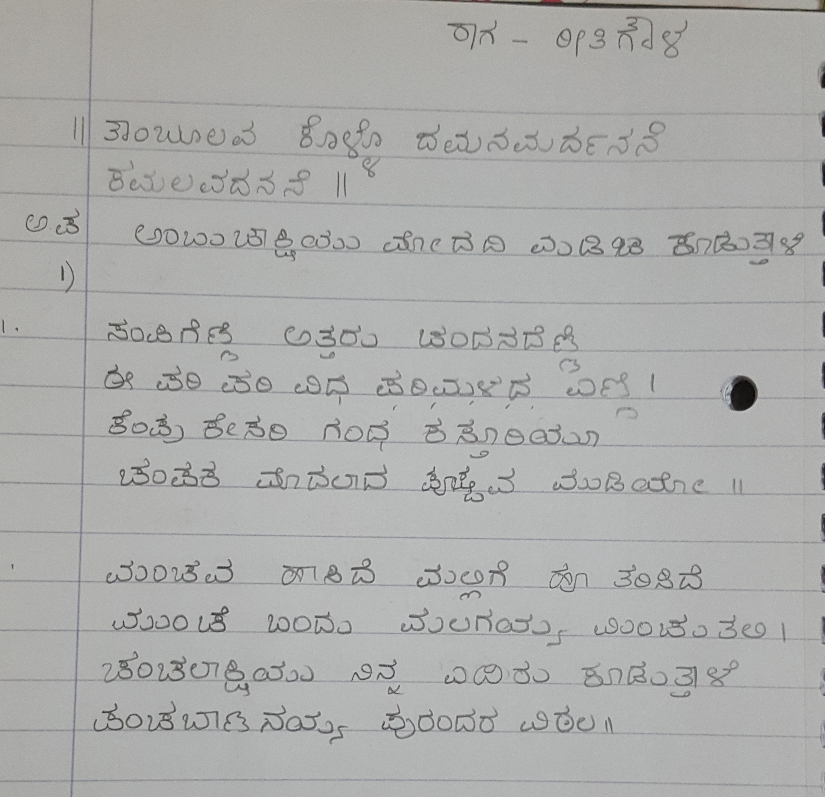 1. Aa veleyalli aaraara kaydeyo deva (ಆ ವೇಳೆಯಲ್ಲಿ ಆರಾರ ಕಾಯ್ದೆಯೋ ದೇವ) (Lyrics)