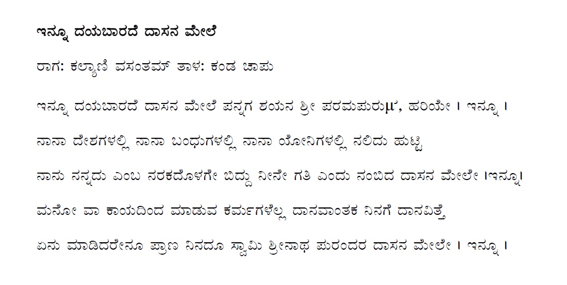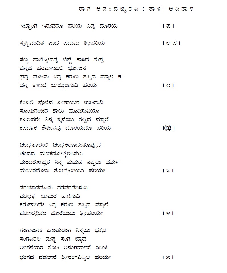 17. Yaakishtu dayavu initilla hariye (ಯಾಕಿಷ್ಟು ದಯವು ಇನಿತಿಲ್ಲ ಹರಿಯೇ) (Lyrics)