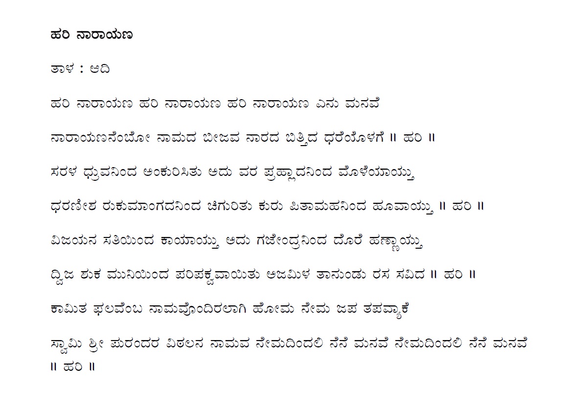 Hari / Narayana / Vishnu Songs (ಹರಿ / ನಾರಾಯಣ ದೇವರ ಹಾಡುಗಳು)