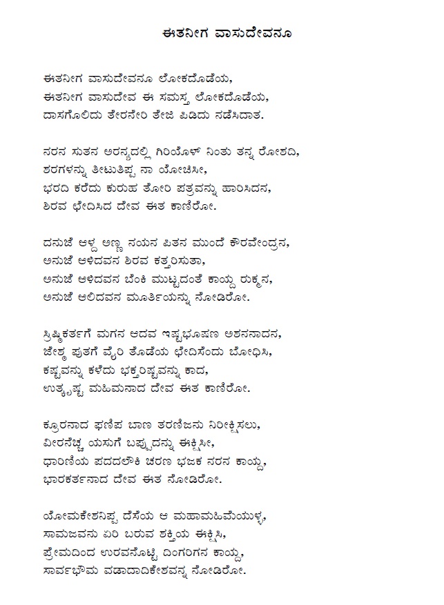 7. Eetaneega vaasudevanu (ಈತಾನೀಗ ವಾಸುದೇವನು) (Lyrics)