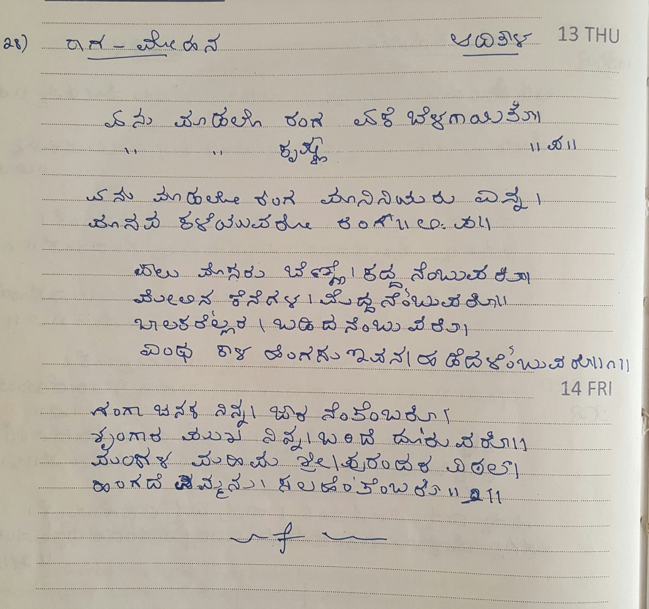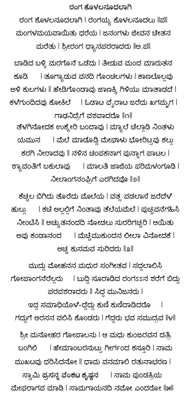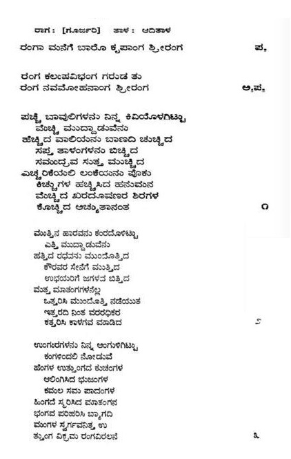 13. Ranga ninna kondaaduva (ರಂಗ ನಿನ್ನ ಕೊಂಡಾಡುವ) (Lyrics)