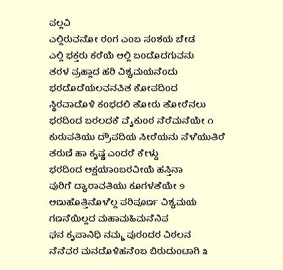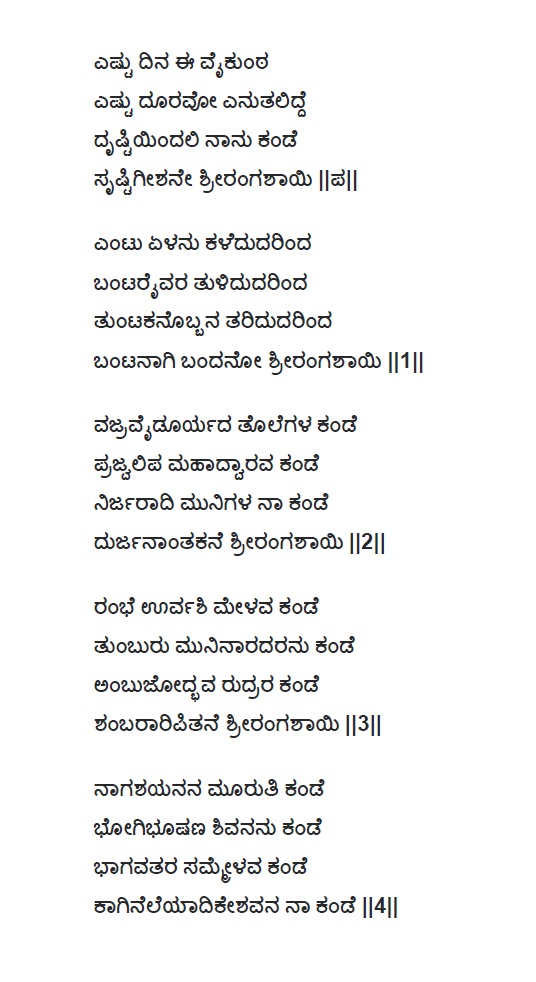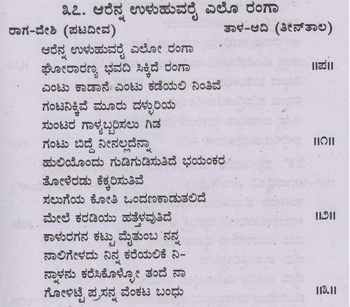 8. Elliruvano ranga emba samshaya beda (ಎಲ್ಲಿರುವನೋ ರಂಗ ಎಂಬ ಸಂಶಯ ಬೇಡ) (Lyrics)