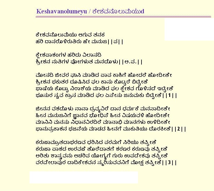 12. Keshava nolumeyu aaguva tanaka (ಕೇಶವನೊಲುಮೆಯು ಆಗುವ ತನಕ) (Lyrics)