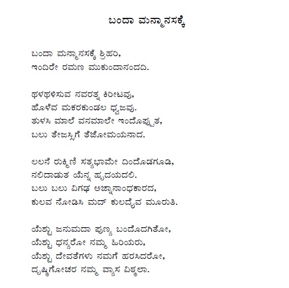 2. Banda manmanasakke sri hari (ಬಂದ ಮನ್ಮಾನಸಕ್ಕೆ ಶ್ರೀ ಹರಿ) (Lyrics)