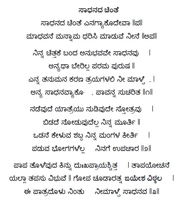 2. Sadhanada chinte enagyako deva (ಸಾಧನದ ಚಿಂತೆ ಏನಗ್ಯಾಕೊ ದೇವ) (Lyrics)