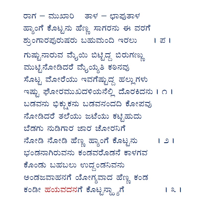 5. Dayavaago dayavago hayamukha (ದಯವಾಗೋ ದಯವಾಗೋ ಹಯಮುಖ) (Lyrics)