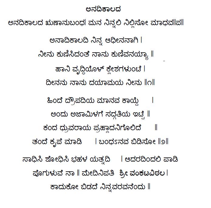 1. Anaadyanantha kaaladali nee nirdosha (ಅನಾದ್ಯನಂಥ ಕಾಲದಲ್ಲಿ ನೀ ನಿರ್ದೋಷ) (Lyrics)