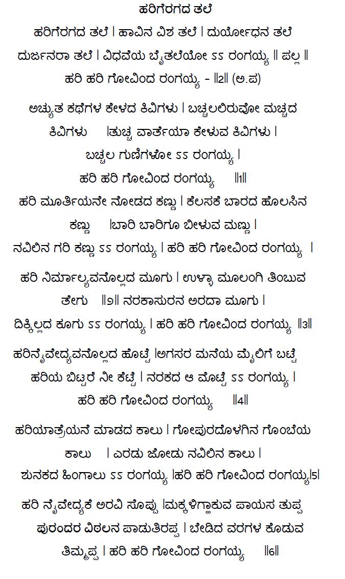 Hasigyalu Govinda Dasa Songs (ಹಸಿಗ್ಯಾಳು ಗೋವಿಂದ ದಾಸರ ರಚನೆ)