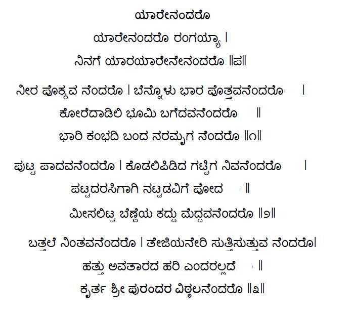 2. Aaru sangada baahorilla narayanana (ಆರು ಸಂಗಡ ಬಾಹೋರಿಲ್ಲ ನಾರಾಯಣನ) (Lyrics)