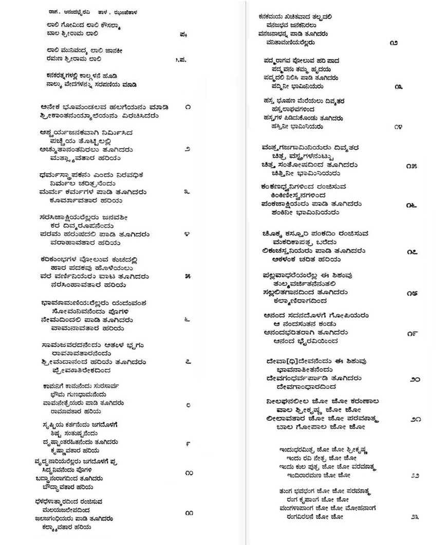17. Suvvi sridevi ramana suvvi (ಸುವ್ವಿ ಶ್ರೀದೇವಿ ರಮಣ ಸುವ್ವಿ) (Lyrics)