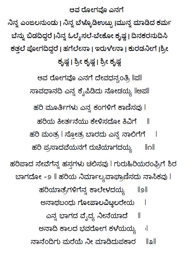 1. Aava rogavu enage deva dhanvantri (ಆವ ರೋಗವು ಎನಗೆ ದೇವ ಧನ್ವಂತ್ರಿ) (Lyrics)