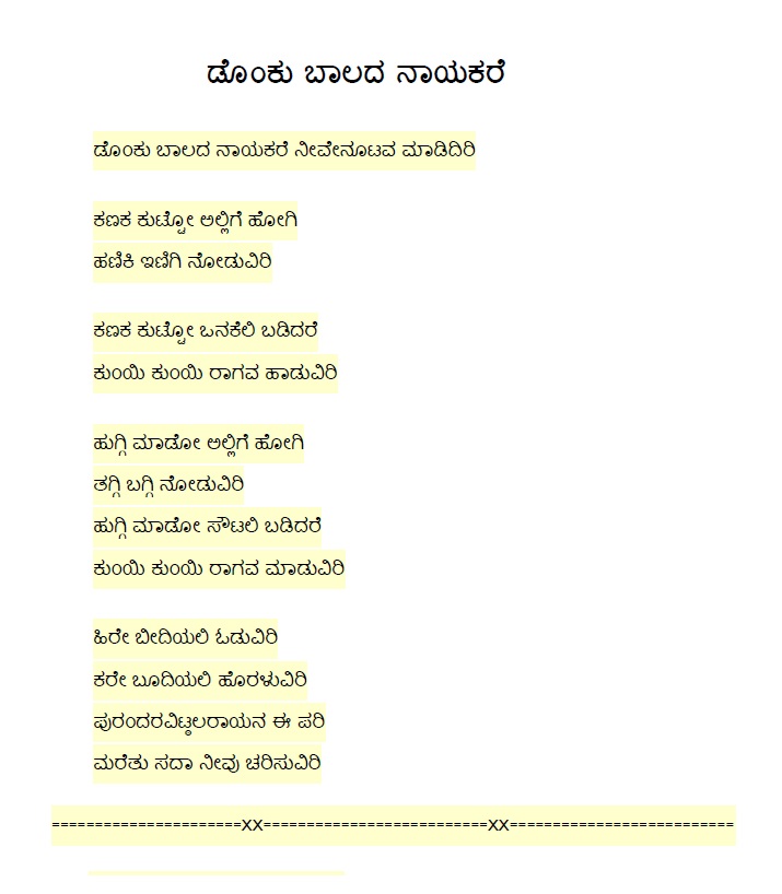 75. Taala beku takka mela beku (ತಾಳ ಬೇಕು ತಕ್ಕ ಮೇಳ ಬೇಕು) (Lyrics) (Video)