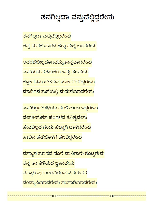78. Tanagillada vastuvelliddarenu (ತನಗಿಲ್ಲದಾ ವಸ್ತುವೆಲ್ಲಿದ್ದರೇನು) (Lyrics)