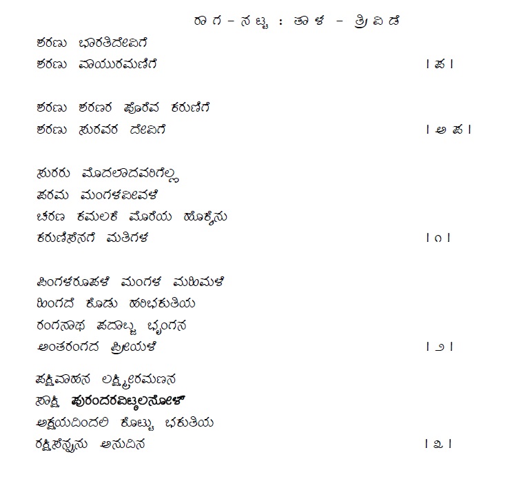 3. Sharanembe vaani poreye kalyani (ಶರಣೆಂಬೆ ವಾಣಿ ಪೊರೆಯೆ ಕಲ್ಯಾಣಿ) (Lyrics)