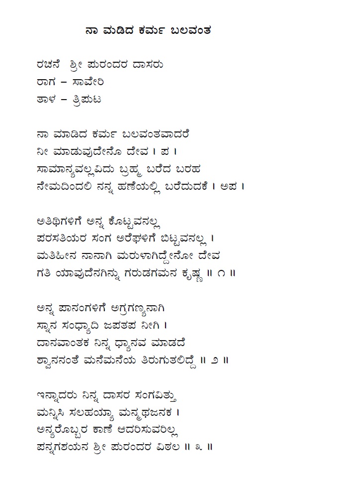 59. Naa maadida karma bhalavantha (ನಾ ಮಾಡಿದ ಕರ್ಮ ಬಲವಂತ) (Lyrics)