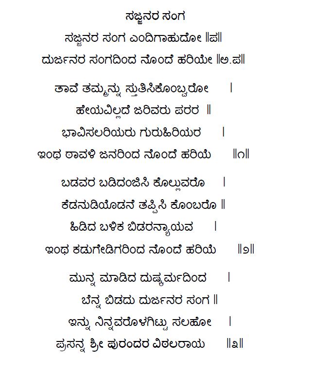 73. Sajjanara sangha endigahudo (ಸಜ್ಜನರ ಸಂಘ ಎಂದಿಗಾಹುದೋ) (Lyrics)