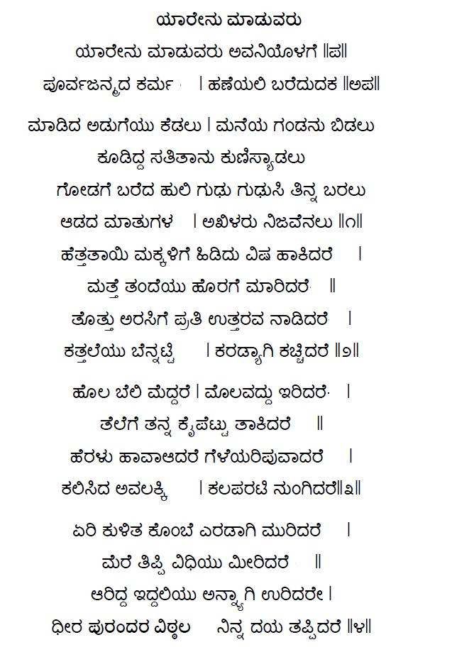 83. Yaarenu maaduvaru avaniyolage (ಯಾರೇನು ಮಾಡುವರು ಅವನಿಯೊಳಗೆ) (Lyrics)