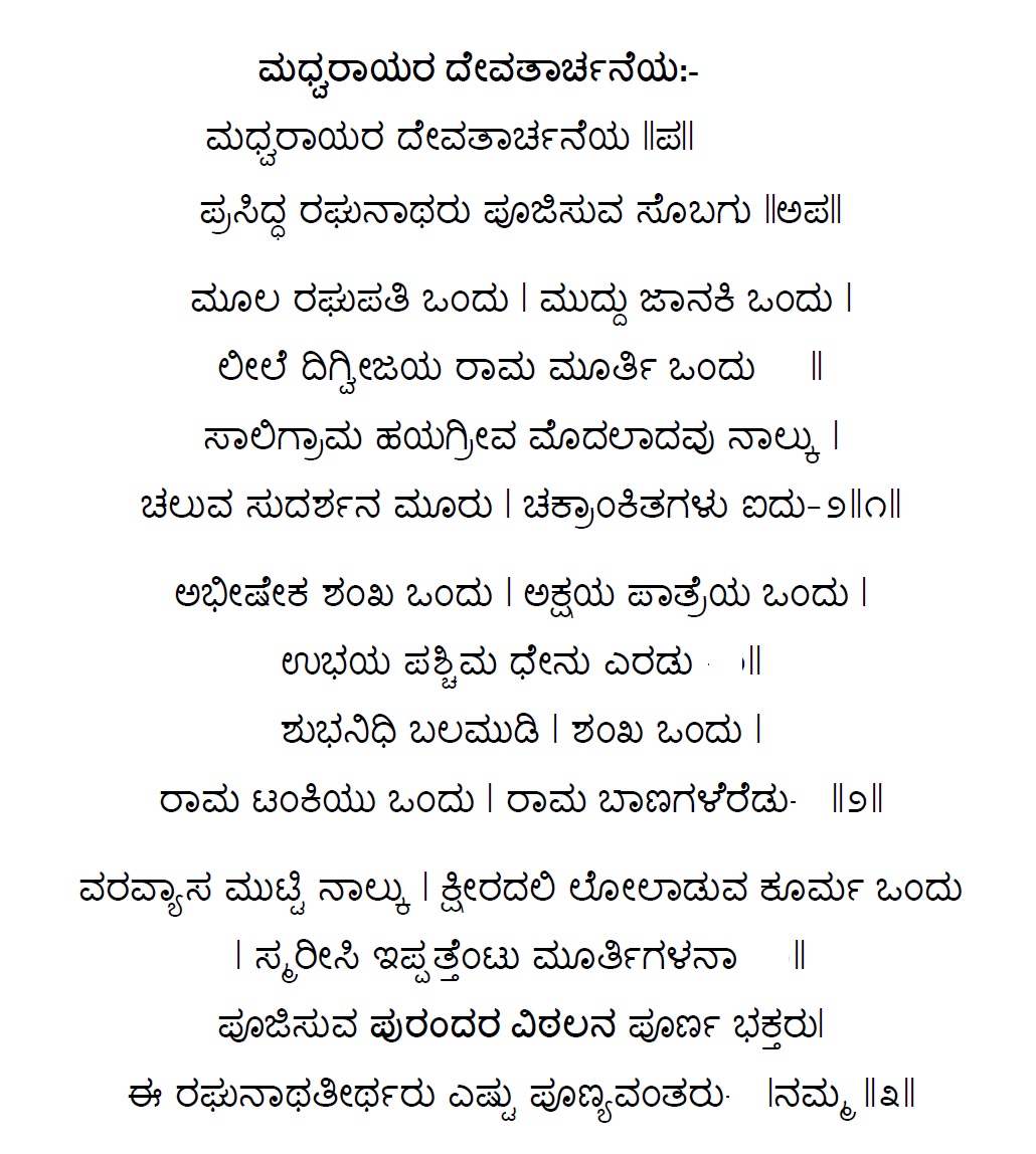 54. Madwaraayara devatharchaneya prasidha raghunatharu (ಮಧ್ವರಾಯರ ದೇವತಾರ್ಚನೆಯ ಪ್ರಸಿದ್ಧ ರಘುನಾಥರು) (Lyrics)